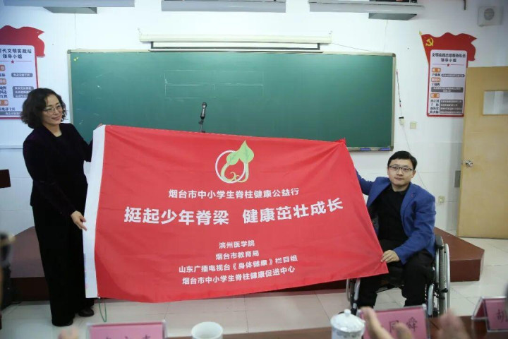 面对脊柱侧弯成为青少年健康“第三大杀手”的现状,2019年,经过半年多的筹备,滨州医学院妇委会联合教体部门启动了烟台市中小学生脊柱健康公益行。刘杨作为骨干成员,冲在一线,为众多因孩子脊柱问题陷入困惑的家庭带去了支持与转机。为保证规范化、专业化和标准化,专家团队制定脊柱侧弯自查自筛表,录制脊柱健康操,发放科普材料,辅导家长和老师自查自筛和预防性锻炼。形成了一套可复制、经济高效的模式,构建“筛查-干预-预防-推动政策落地”的全链条防控体系,让更多青少年挺直脊梁。